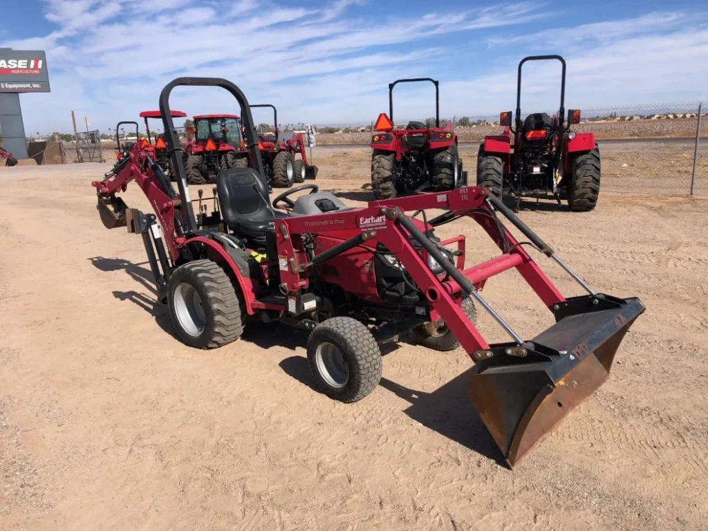 Description: A well-equipped 2014 Mahindra Max 24 HST tractor featuring a hydrostatic transmission, 24L loader, and 24B backhoe—ideal for a range of tasks with a clean operator station and solid condition.